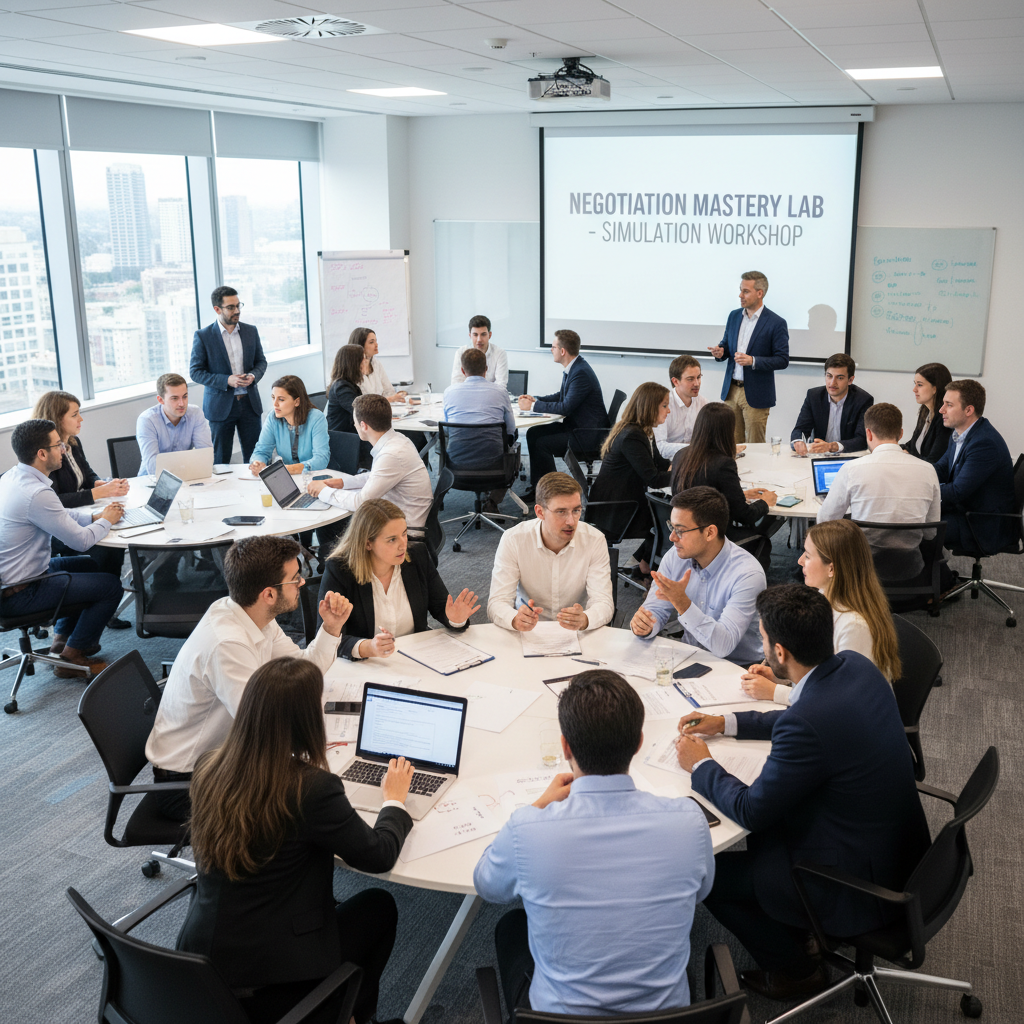 - Łącz trening w symulatorze z praktyką w realnych negocjacjach.